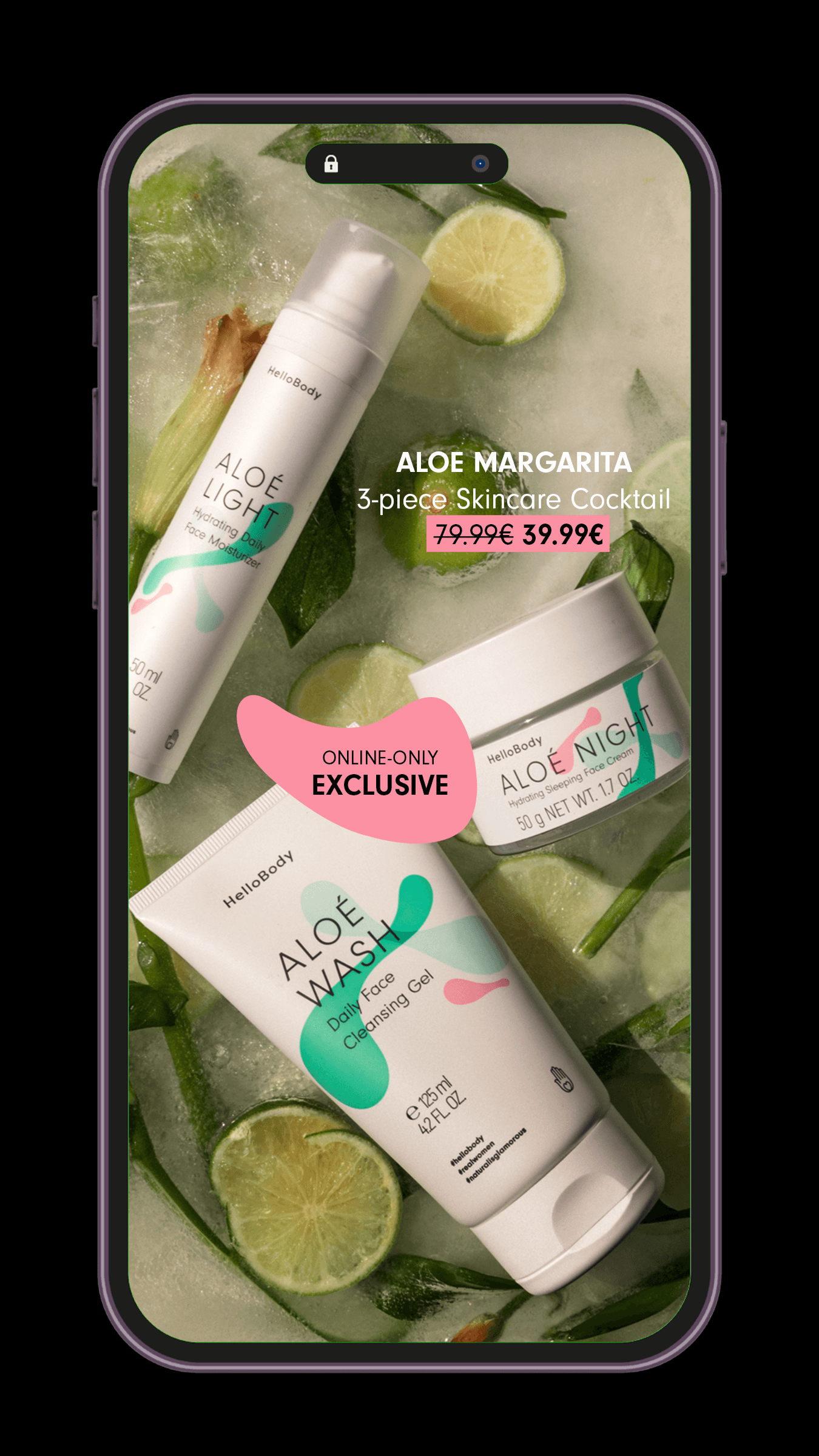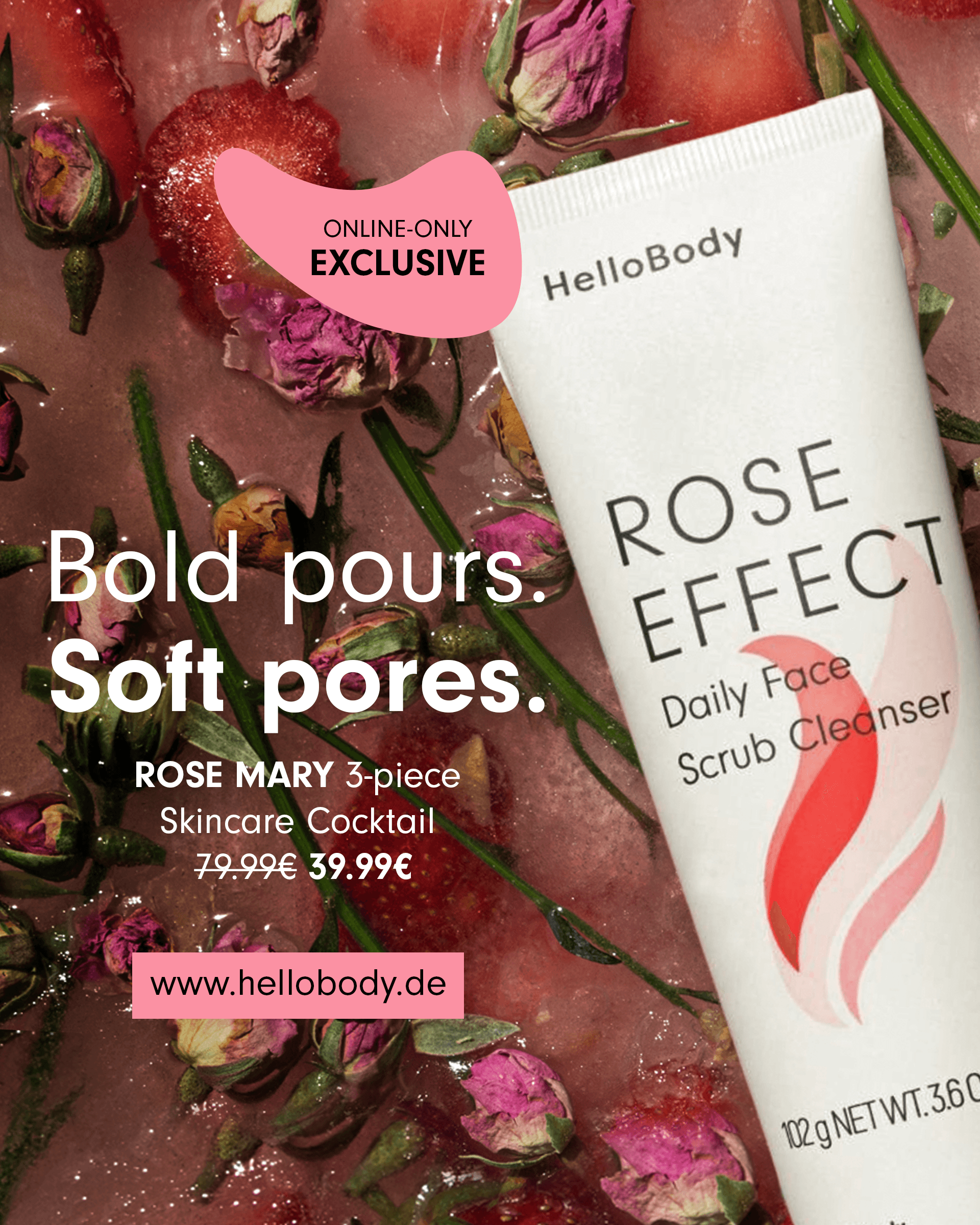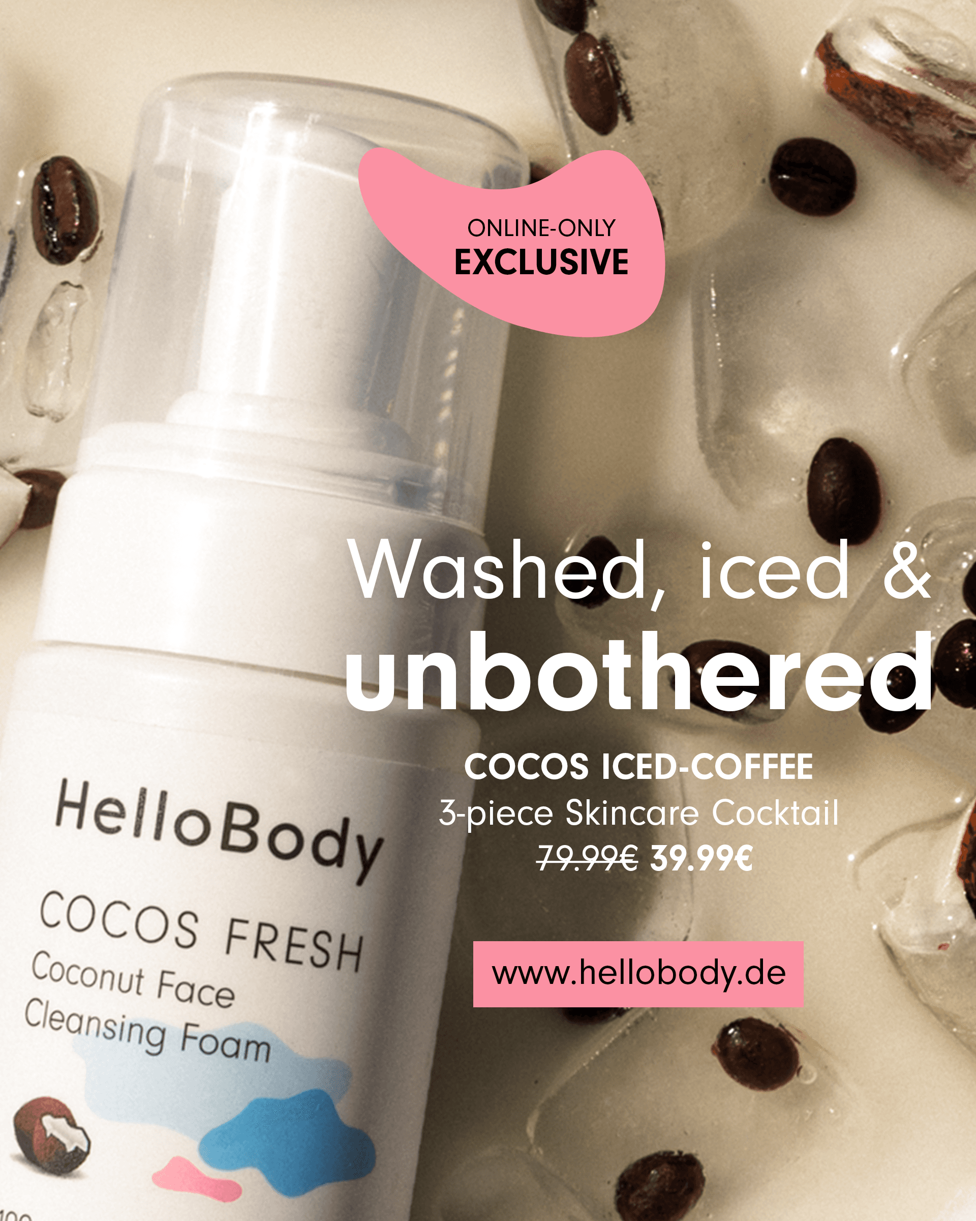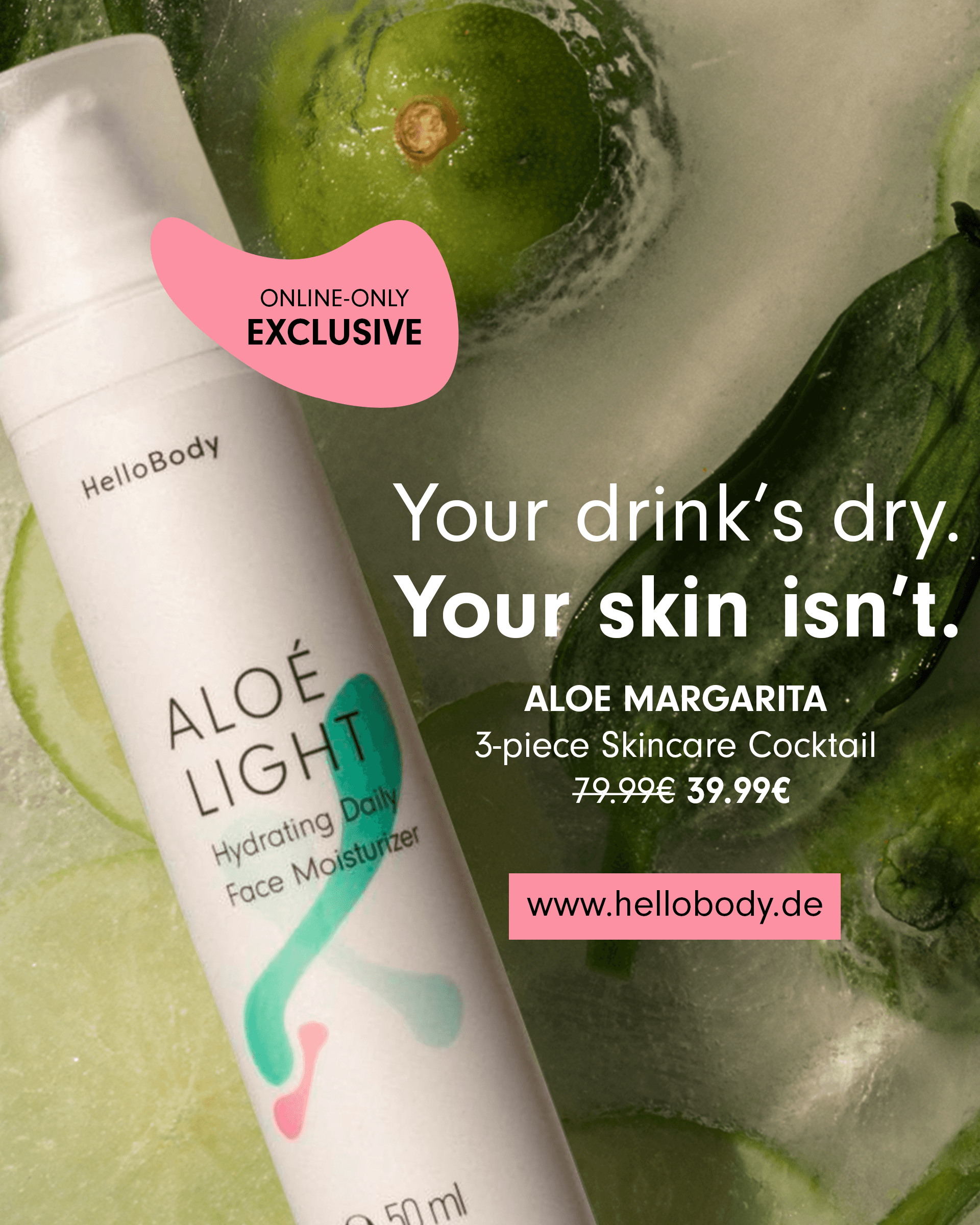 HelloBody are Berlin-based skincare brand, established in 2015. Responding to the trend of beauty bars and a 0% lifestyle, HelloBody launched 3x limited skincare collections named after famous cocktails: COCOS ICED COFFEE, ROSE MARY, and ALOÉ MARGARITA. To support this campaign, I designed advertising materials to be used across HelloBody's owned social and digital marketing channels. Photography: Erika Cianco. Branding: Gaba Guzik.